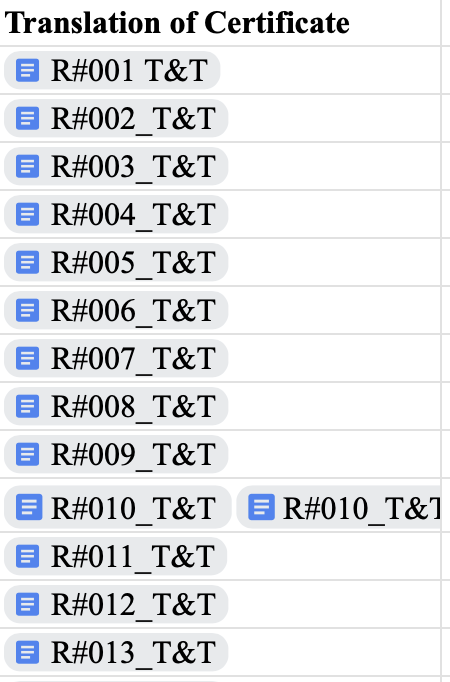 To view the transcription for each relic please click on the transcription document link, which is hyperlinked on each entry.